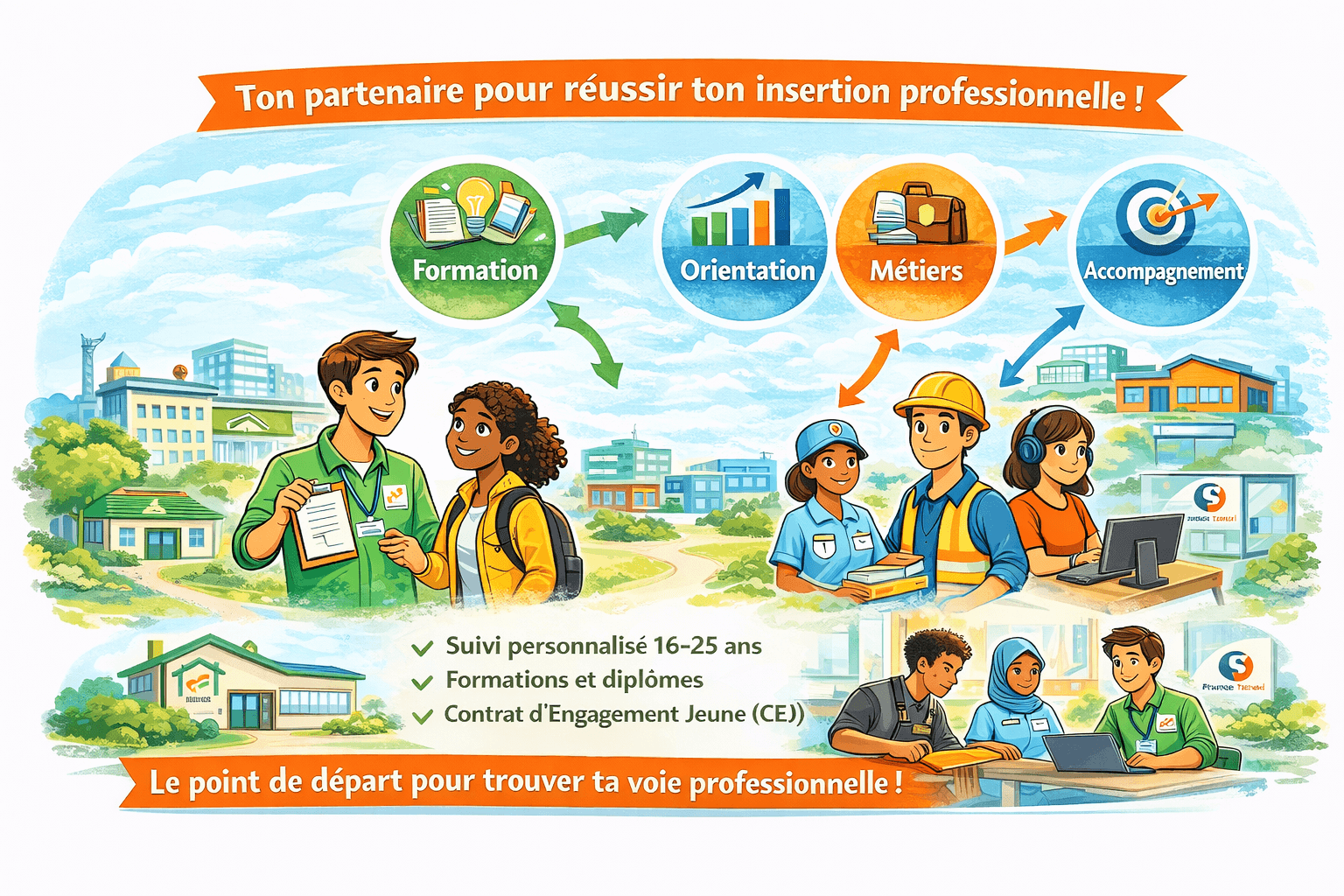 Accompagnement, formation et insertion professionnelle des 16–25 ans